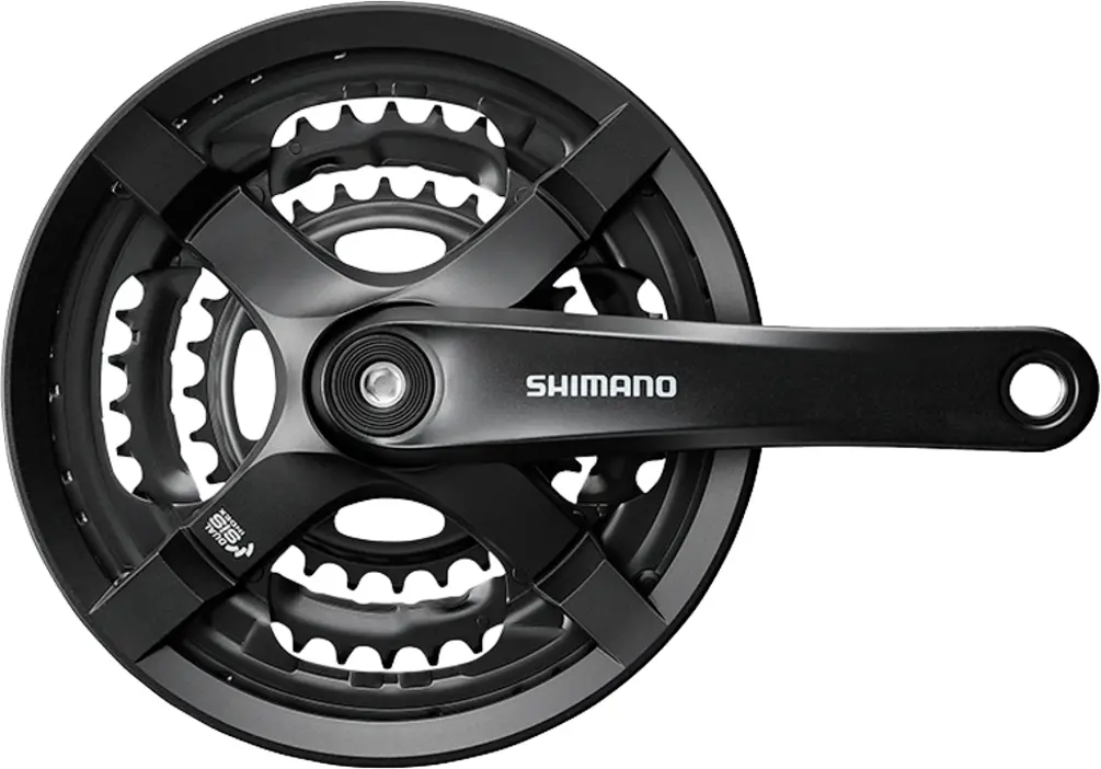 Shimano Tourney FC-TY501 Triple Front Chainwheel 170mm Black Chainguard 24-34-42TThe Shimano FC-TY501 Tourney Front Chainwheel has three chainrings and is compatible with 6, 7, or 8 speed rear cassettes. This square constructed crank uses a BB-UN100 Bottom Bracket. The chainring sizes available are 24-34-42T. Available in Arm Lengths of 170mm and 175mm in Black.689228634046