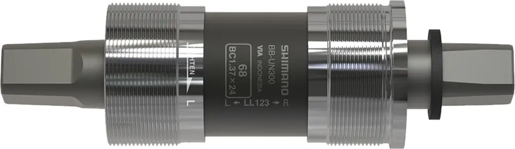Shimano UN300 English Bottom Bracket 68mmx122.5mm GreyThe Shimano UN300 English Bottom Bracket High quality sealed bottom bracket with a squared taper. The new chain line stabilizer helps to increase chain reliability. The adapter material is extra strong Aluminum. For use with JIS square tapered crank sets. The spindle is hollow and crankarm fixing bolts are sold separately. Available in Shell lengths 68mm or 73mm. Available in Spindle lengths 68mmx107mm, 68mmx110mm, 73mmx113mm, 68mmx115mm, 68mmx117.5mm 73mmx118mm, 73mmx122.5mm, and 68mmx127.5mm.192790619156