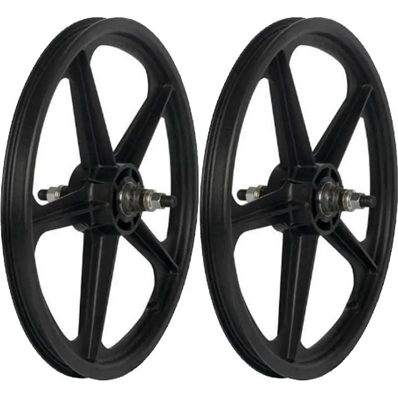 Skyway Tuff II 20’’ Wheelset 9T Black Skyway Tuff II Wheelset. This is the original wheelset for BMX racing and freestyle that has been around since BMX started. Still made in the USA. Still incredibly bombproof. Still built around sealed cartridge bearings. If you have an oldschool bike that you need to refresh, these are the wheels for you. 3/8" axle in the front and 14mm axle in rear. 20" diameter. Comes with 9T Driver already installed. 765868530099