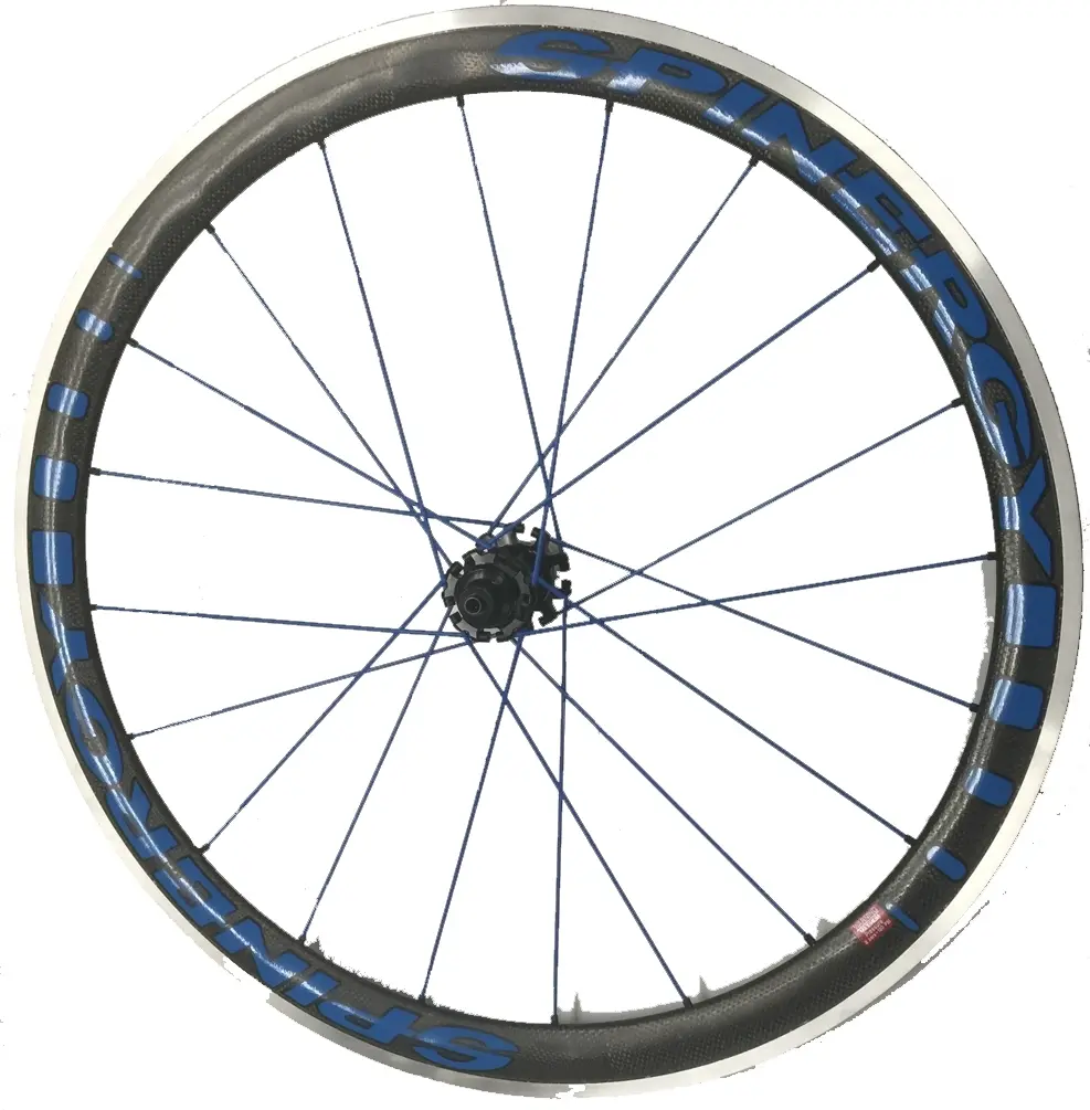 Spinergy Stealth Gloss Carbon PBO Wheelset Campagnolo Blue SpokesSpinergy Stealth Gloss Carbon PBO Wheelset. Advanced PBO fiber spokes (black or yellow) - 16 front/20 rear, All black unidirectional thermoset composite carbon construction
