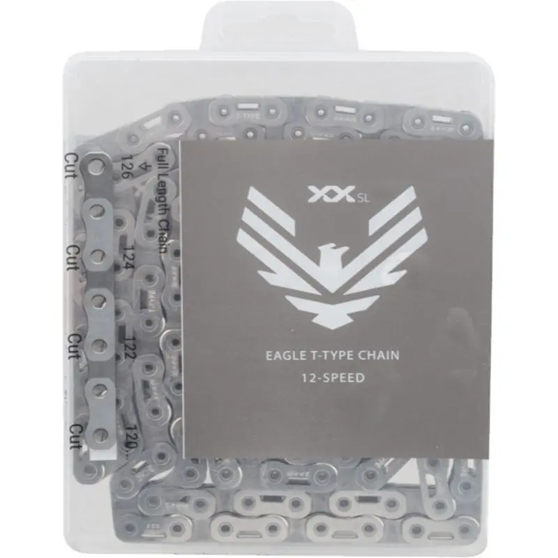 Sram Eagle XX SL 12 Speed Chain T-Type FlattopThe Sram Eagle XX SL 12 Speed T-Type Flattop Chain is specifically engineered to optimize Eagle Transmission, the XX SL Eagle Transmission Flattop Chain features a unique flat top. Not only does this shape maximize shifting performance and robustness, but it also contemporizes the look of your super bike, especially with its outer plate cut outs and hollow pins that push the strength-to-weight ratio to an unprecedented level. Not to be used on an E-Mountain Bike.710845891489