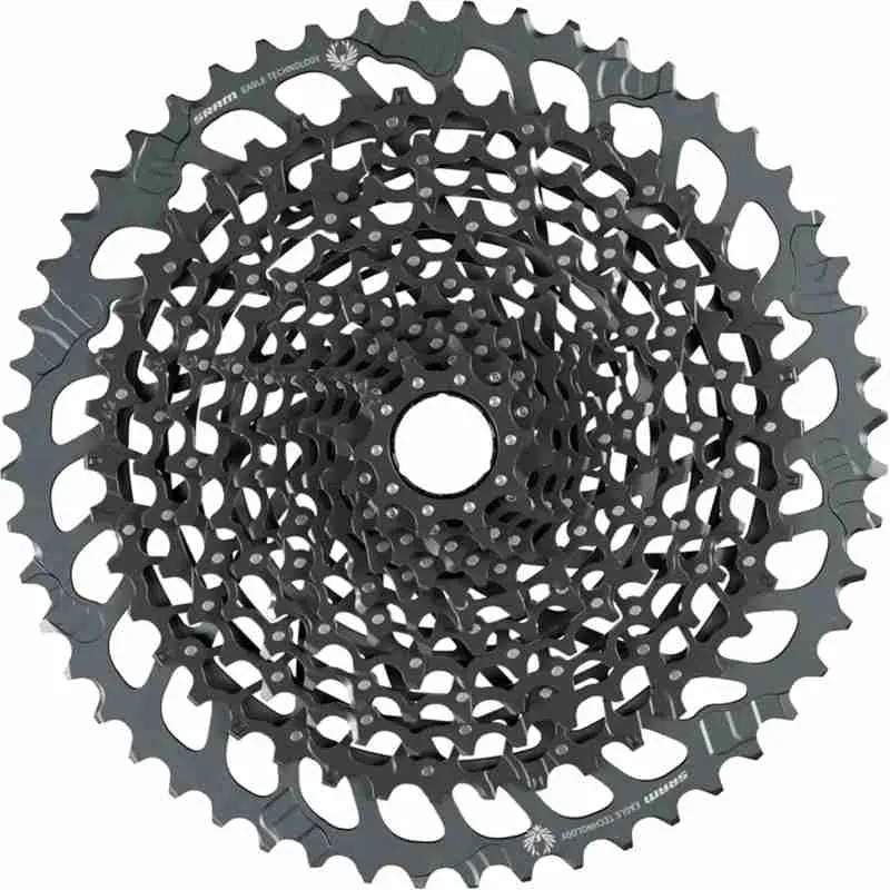 Sram GX Eagle XS-1275 12 Speed Cassette T-Type 10-52t BlackThe Sram XS-1275 GX Eagle T-Type XD 12sp Cassette is for riders who prioritize all day function over anything else. Using an expanded, 520-percent gear range giving riders more ability to spin and recover on the burliest climbs. Featuring FULL PIN technology that uses lightweight, precision engineered steel cogs permanently connected with high-strength stainless steel pins. An open design similar to our X-DOME cassette that aids in mud clearance, giving riders crisp shifting performance and longer component life. Compatible with E-Bikes. 10-12-14-16-18-21-24-28-32-36-42-52t. Weighs 445g. Available in Black.710845910456