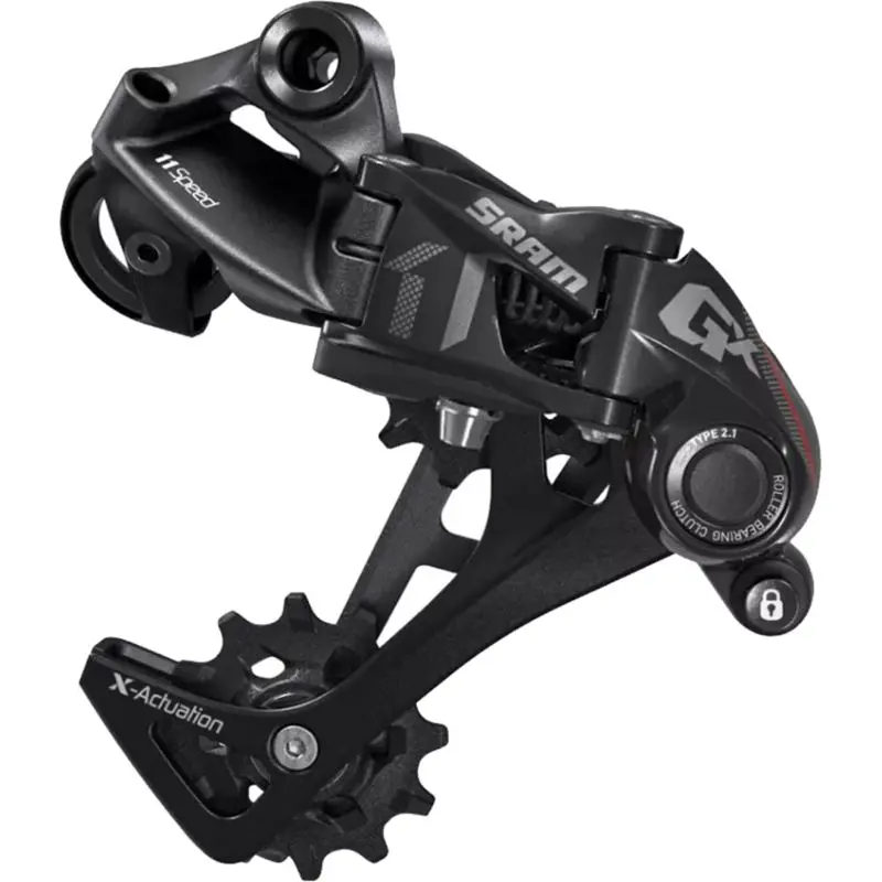 Sram GX X-Horizon 1x11 Rear Derailleur Long Cage RedThe Sram GX X-Horizon 1x11 Rear Derailleur is engineered for smooth, reliable shifting action-from the larger upper pulley offset to the 12-tooth X-SYNC pulley wheels. By eliminating unwanted chain movement, X-HORIZON shifts faster, puts an end to ghost shifting, and reduces shift force as well as chain slap. Thanks to CAGE LOCK technology, wheel removal and installation are easier than ever. The steel sealed cartridge bearings work together with the X-Actuation Technology for crisp, even shifting throughout the cassette range. The max teeth are 42T on this long cage. Weighs only 265g.710845770210