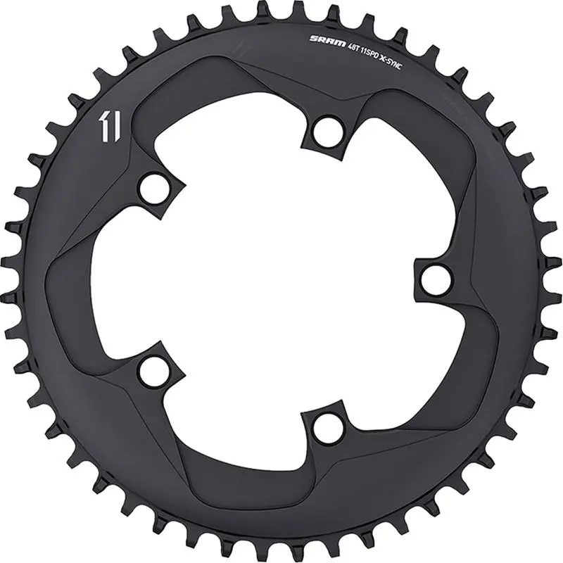 Sram Rival 1 X-SYNC Chainring 48T 110 BCD BlackThe Sram X-SYNC Chainring 48T 110mm BCD is designed for the 1x drivetrain to be superiorly functional without a chain guide. CNC Machined alloy with the new 5 bolt X-SYNC technology gives you the simplicity of thick teeth and precise spacing to best control the chain as you explore the outer limits of nature. Or while you leave your cyclecross competitors in the dust as they flip through their plethora of gears. Black in color.710845770647