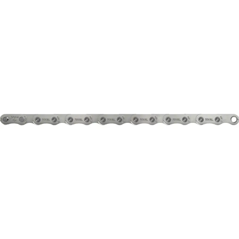 Sram Rival AXS Flattop 12 Speed ChainThe Sram Rival AXS Flattop 12 Speed Chain utilizes Flattop technology to allow for a narrower chain with quieter operation and increased strength and durability. This chain is fantastic for 1x and 2x eTap AXS systems and includes a Flattop PowerLock. Comes with 120 links and has solid pins.710845862946