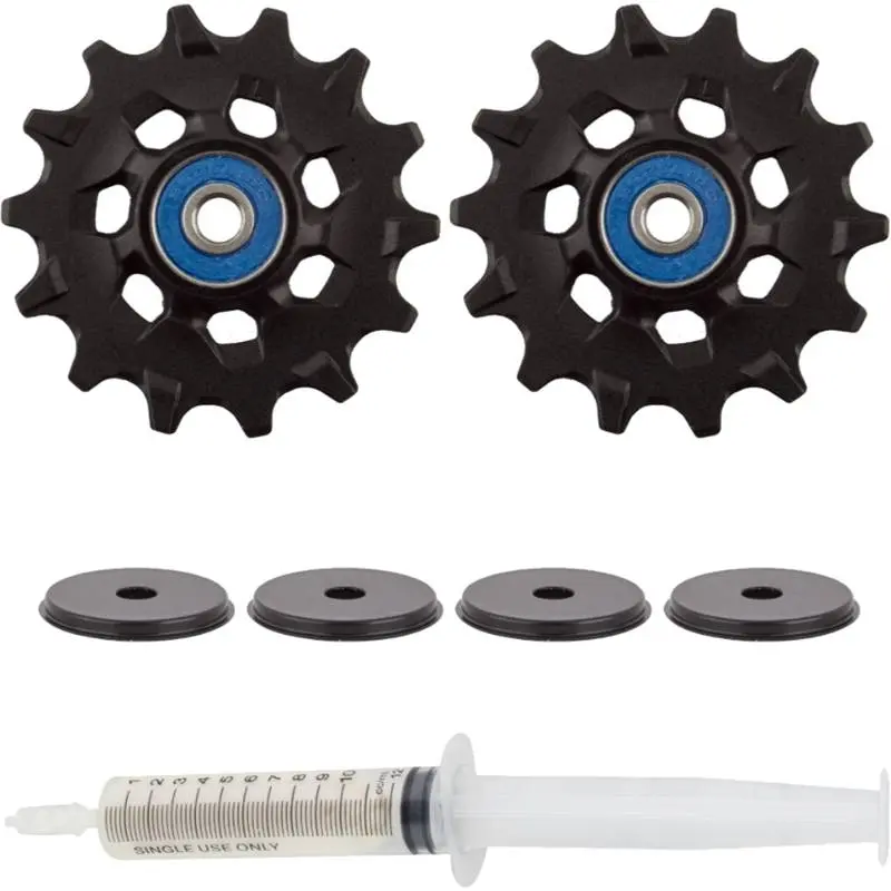 Sram XX1 Ceramic Bearing Rear Derailleur Pulleys 11 SpeedThe Sram XX1 Ceramic Bearing Rear Derailleur Pulleys run on super-smooth, efficient ceramic bearings so your drivetrain rolls with ease. This set is for Sram 1x11 speed rear derailleurs. They are lighter than conventional pulleys and even come with SRAM's ceramic-bearing grease in an easy-to-use 10ml syringe.710845724428