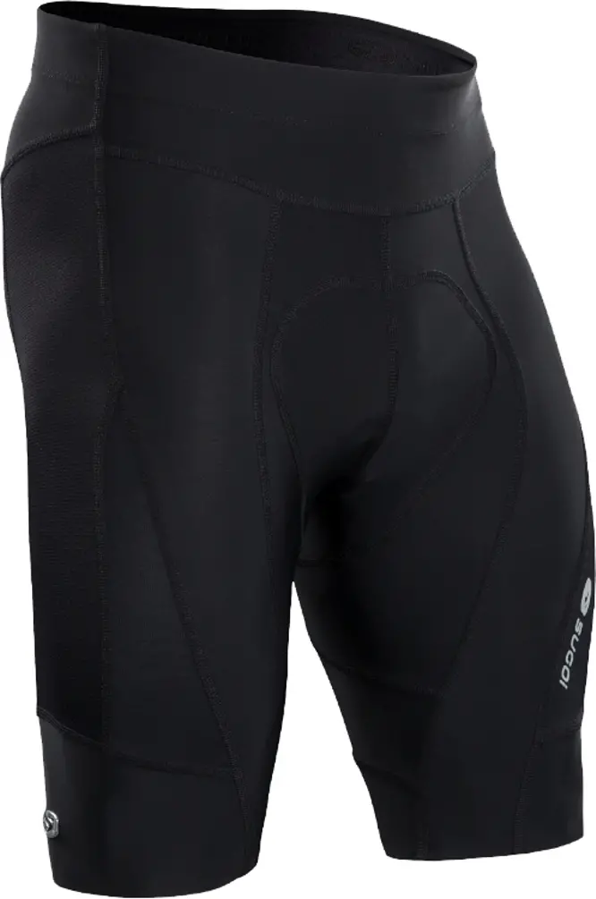 Sugoi RS Pro Short Small Black The Sugoi RS Pro Short uses top notch aero fabric on the thighs to increase your aerodynamic potential while training and racing. The Upgraded Formula FX Chamois with 3D construction and Poron at your sit bones for increased comfort. There is a silicone gripper at the leg to prevent ride up. Available in Black. 673077043029