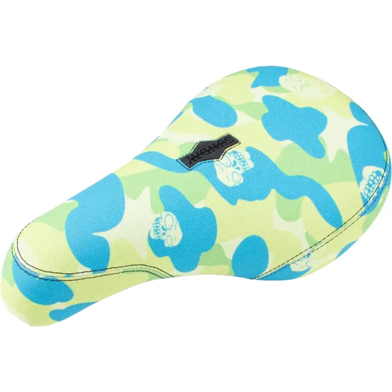 Sunday Camosweep Pivotal Saddle Kiwi CamoThe Sunday Camosweep Pivotal Saddle is a great replacement seat on your BMX bike. Jake Seeley’s signature art makes the Camosweep look extra cool. An awesome blue/green camo with skulls. Available in Pivotal only.630950923946
