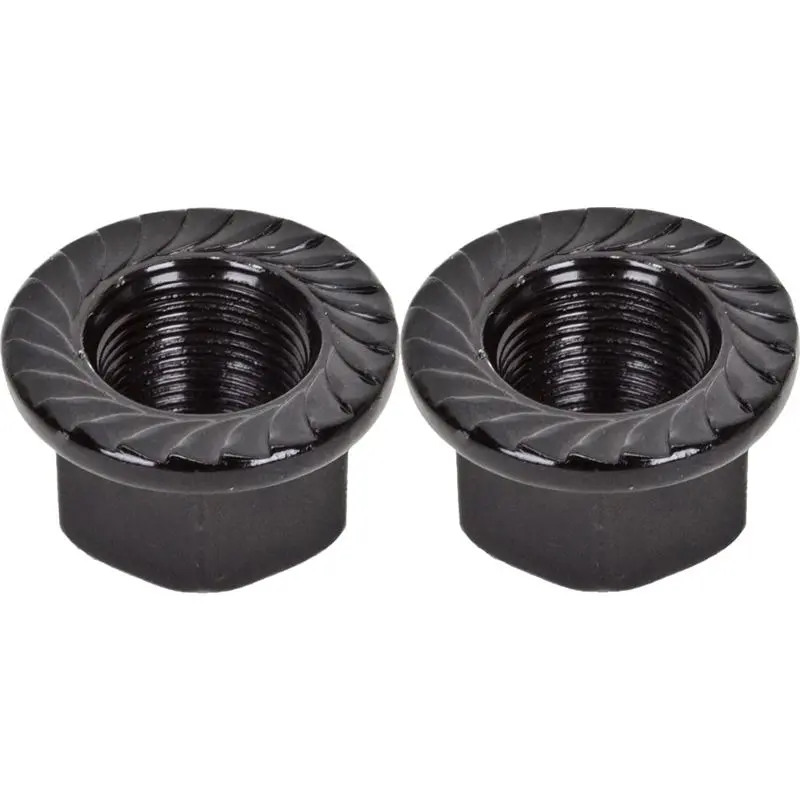 Sunlite 14mm Axle Nut Set. Measures 1x14mm. Available in Black. This is the same set of nuts normally found on a BMX rear wheel, and sometimes on the front wheel. Comes as a set of two.