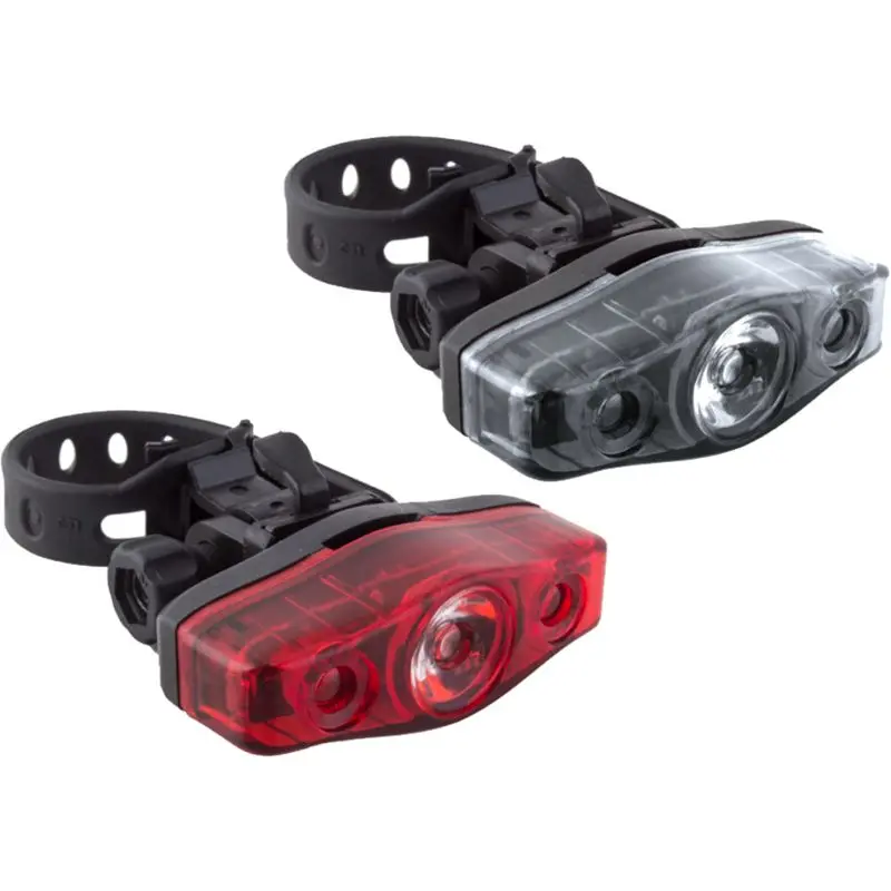 Sunlite HiFi Combo Light Set The Sunlite HiFi Combo Light Set is an excellent battery-operated front and rear light set to help increase your visibility in both the day and nighttime. The front 10 Lumen light and rear 3 lumen light run from 23-30 hours and runs on two AAA batteries each. Each light has a solid mode, and three flashing settings. These lights have a water-resistant construction. Comes with a multi fit silicone rubber mount. 888571038703