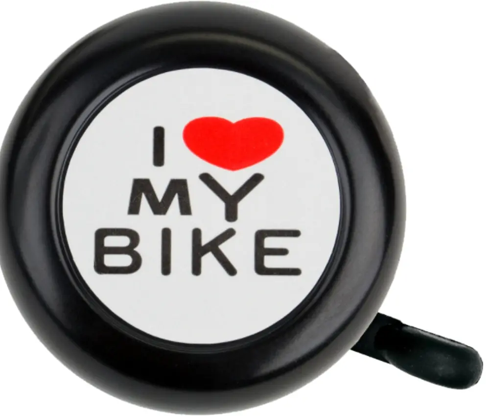 Sunlite I Love My Bike Bell is a metal top dual action bell. Heavy Duty Clamp.