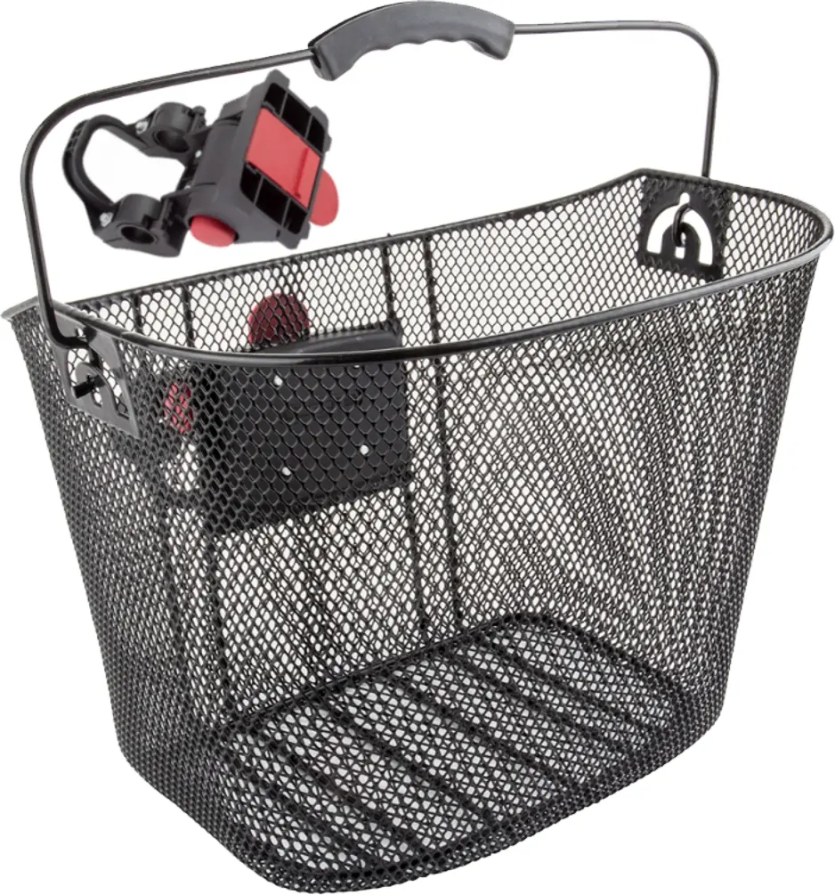 Sunlite QR Alloy Basket BlackThe Sunlite QR Alloy Basket is a durable powder coated steel basket engineered for convenience. There is a rubber carrying handle and Quick release handlebar mounting system for 22.2mm and 31.8mm handlebars. This basket has a weight limit of 11lbs. The dimensions are 13.5 x 10.5 x 10.5’’. Available in Black and White.888571075258