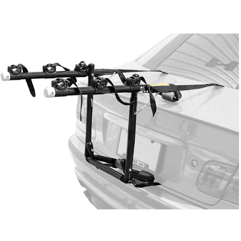 Sunlite TB-340 3 Bike Trunk RackThe Sunlite TB-340 3 Bike Trunk Rack uses carry arm spacing to fit a wide range of frame styles and designs. The Patented tie-down cradle system individually secures and protects bicycles. The Patented design fits most sedans, hatchbacks, minivans & SUV`s. The Padded lower frame helps keep bicycles away from vehicle. The Patented “Sure Strap” lower strap keeps the bottom hook in place during use.