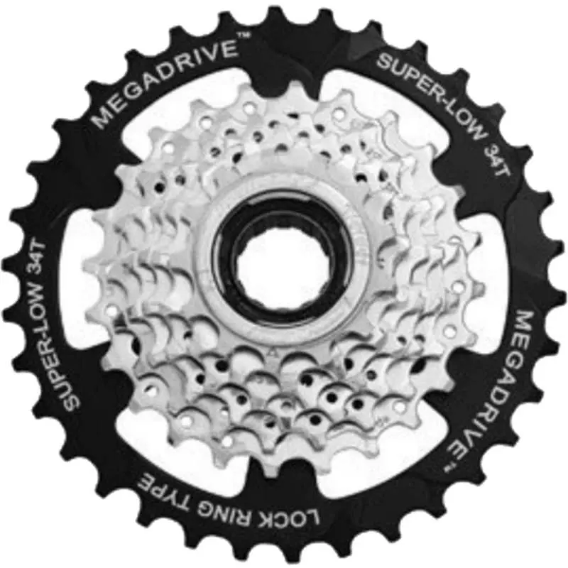 Sunrace 13-34 7-Speed FreeWheel constructed with Fluid Drive Plus, Sprocket Material; Steel, Spacer Material; Engineering Polymers, Chain Compatibility; 7.3mm. Has Zinc+ Coating for improved performance.