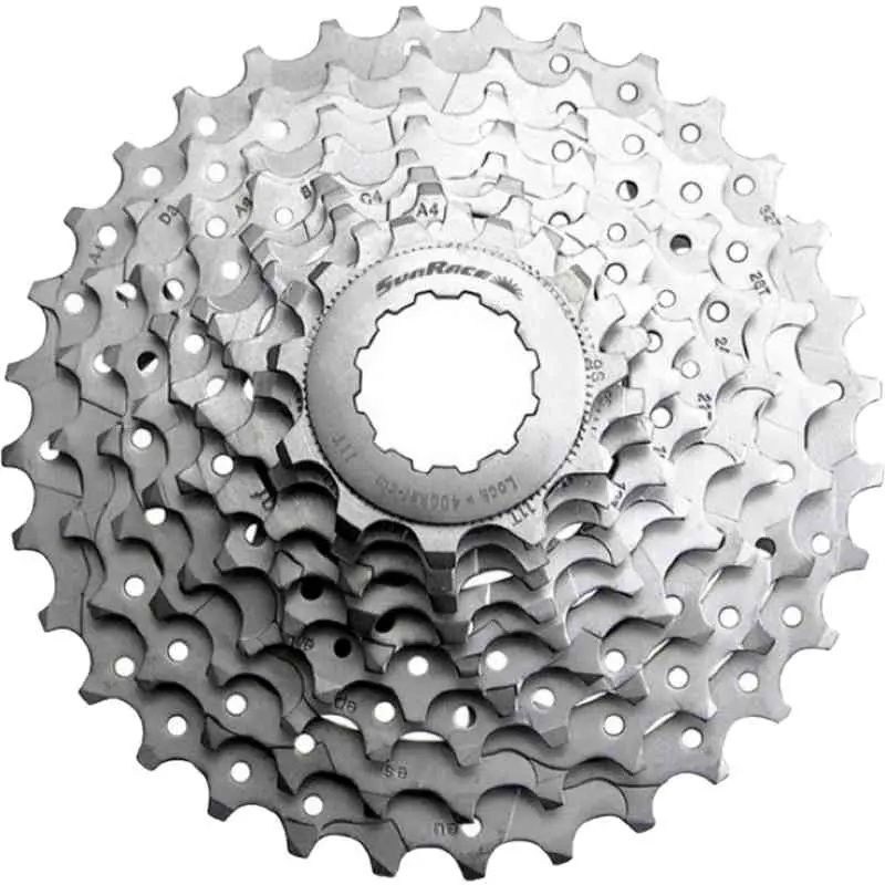 Sunrace CSM96 9 Speed Cassette 11-34T Chrome The Sunrace CSM96 9 Speed Cassette utilizes the Super Fluid Drive shift profiling allows super smooth shifting. This is compatible with SRAM and Shimano 9 speed drivetrains. The Sandblast satin finished steel rings are built to last. The gearing is 11-12-14-16-18-21-24-28-34T. Weighs around 360g. 4710944242096