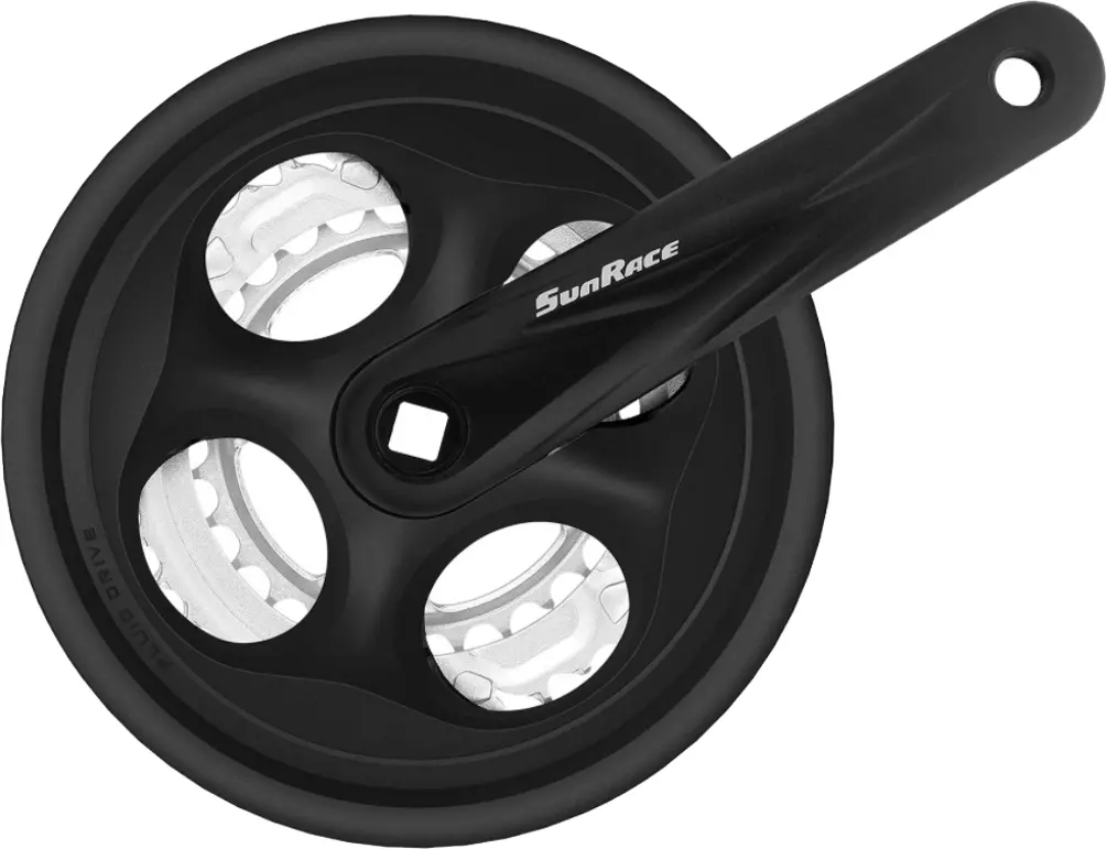 Sunrace FCM300 Triple Front Crankset 48-38-28T 170mm BlackThe Sunrace FCM300 Front Crankset is a great replacement for your worn out Front Mountain triple Crankset with a Square taper, compatible with 6/7/8 speeds in the rear. These have 48-38-28T teeth and are compatible with 122mm Bottom Brackets. Approximate Weight 1107g. Available in 170mm or 175mm crank arm lengths.4710944249682