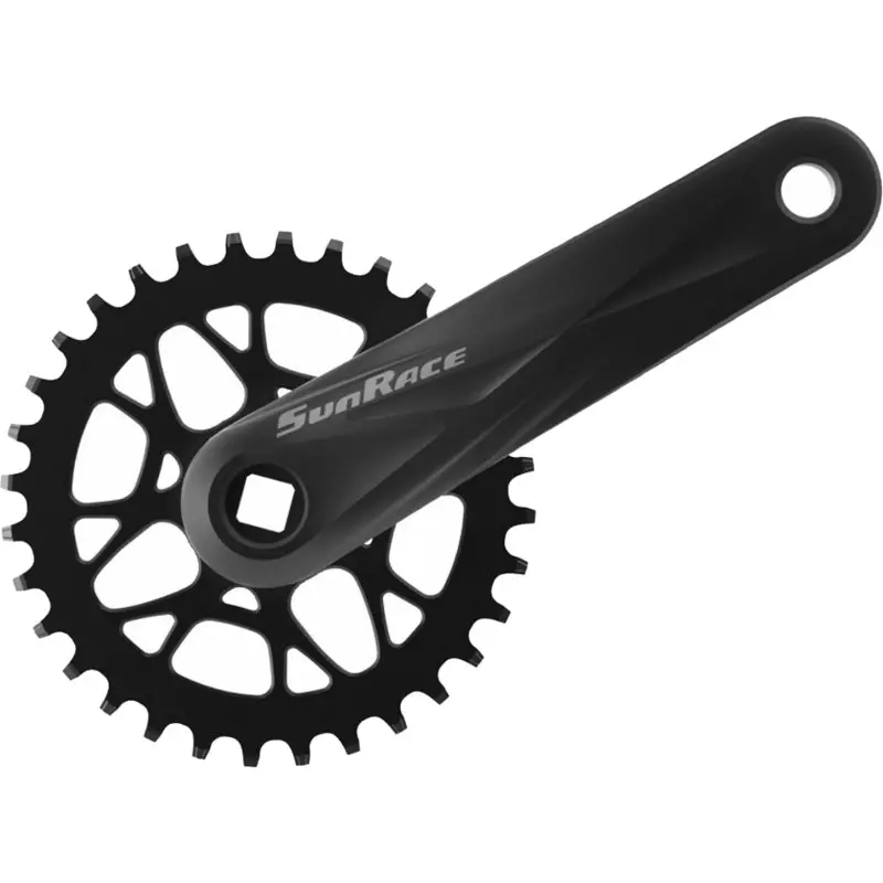 Sunrace FCM40U Front Crankset 32T 175mm Square The Sunrace FCM40U Front Crankset 32T is an excellent replacement for your broken or worn out 1x crankset with a narrow/wide tooth profile. The Steel Chainring is riveted to the spider with forged alloy crankarms for durability. Compatible with spindle type 122 SQR JIS. 175mm crankarm length, 32T. Weighs 746g. Available in Black. 4710944268324