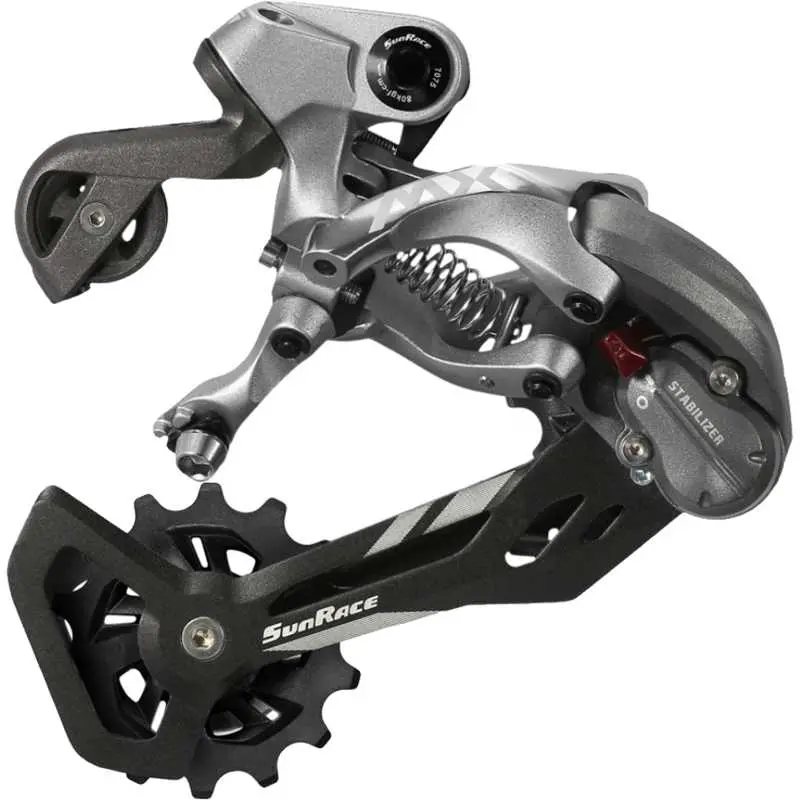 Sunrace RD-MX60 Rear Derailleur 10/11/12 Speed Direct MountThe Sunrace RD-MX60 Rear Derailleur 10/11/12 Speed is a great replacement or upgrade from your previous Shimano 10/11 Speed or SRAM 12 Speed derailleur. The alloy cage with an adjustable chain stabilizer helps to prevent chain drops. The forged alloy links are built to last as you ride. The lower pully has 14t and the upper pully has 12t. The max rear sprocket that will work is 50t on a 1x system and 42 on a 2x system. This is the direct mount version.4710944262056
