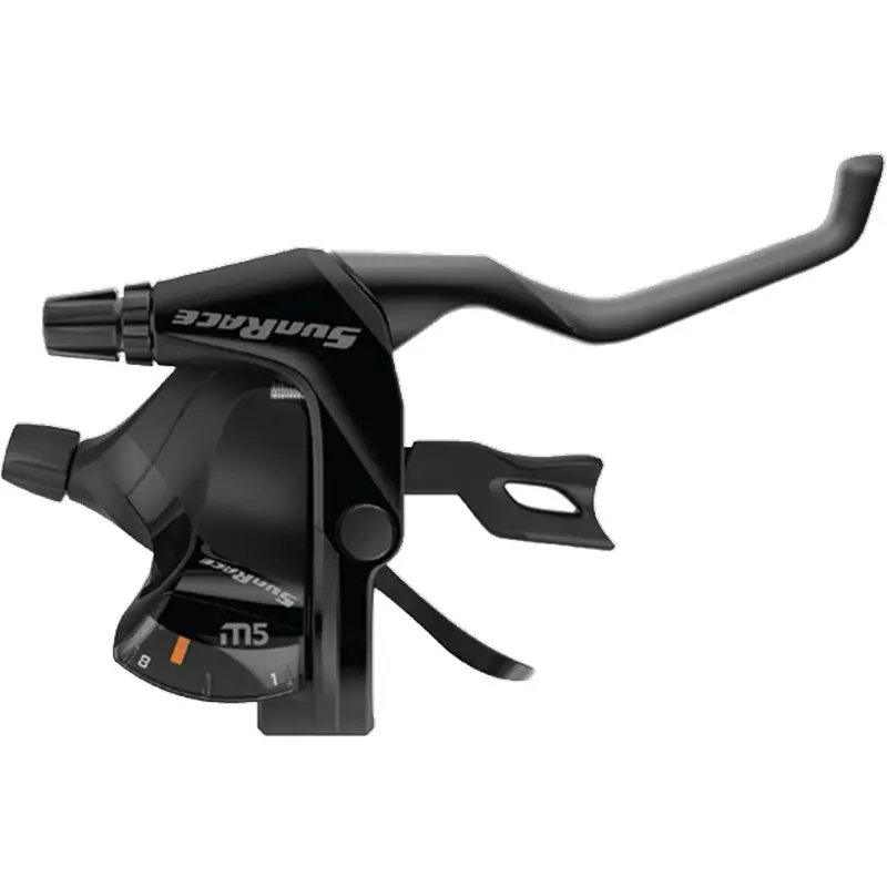 Sunrace ST-M500 V Right Brake/Trigger Shifter Set 3x8 The Sunrace ST-M500 V Brake/Trigger Shifter has a dual release function and optical gear display. The shifting lever is alloy and the small lever is composite. Works with either v-brakes or mechanical disc brakes. The ergonomic 2 finger brake lever is comfortable to use. For 3x8 speed systems. Right shifter for 8 speeds in the rear. 4710944250770