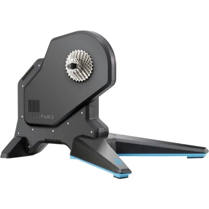 Tacx Flux 2 Smart Trainer T2980The Tacx Flux 2 Smart Trainer T2980 has several upgrades from the original Flux including reaching an incline of 16%, max resistance is up to 2000 watts, and the power meter is accurate up to 2.5%. This direct drive set up trainer has a new heavier flywheel and flywheel placement for a smoother ride. Out of the box compatible with 142x12mm and 148x12mm, also has additional adapters in the box. Newly compatible with long rear derailleur cages. Still connects wirelessly with ANT+ (FE-C) and Bluetooth to your devices to use programs and apps. There are sets of LED lights to let you know when you are connected to a device. Using the Tacx Utility App you can upgrade software as it becomes available. Compatible with Shimano and Sram 8-11 speed drivetrains.8714895055152