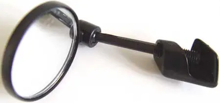 Third Eye Helmet MirrorThird Eye Helmet Mirror. This mirror clamps to the lip of Hard Shell helmets. The maximum opening of the clamp is approximately 1/2 inch. The original helmets all had a ridged outer shell and this mirror was designed to clamp to that outer shell. The clamp can also attach to the visors of many helmets. The glass mirror is 1 1/2 inches in diameter & it is laminated into the mirror shell making it shatterproof730366030006