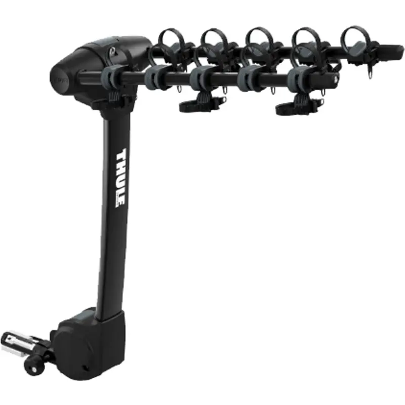 Thule Apex XT 5 9026XTThule Apex XT 5 is your premium hanging hitch bike rack that provides protection and reliability for any family. The Apex XT 5 can transport up to 5 bikes with 5.5’’ spacing between each bike. It has an integrated anti-sway that prevents bike to bike contact and locks in your bike using the integrated cable lock which is included. The Apex XT is quick to install and gives you options of either tilting the rack down to access the rear of your vehicle or folding down arms when rack is not in use. Your load capacity is 150lbs as its compact cradle design accommodates a wide variety of bike sizes and frame styles. Tour the country with your family and bring all your bikes using the Thule Apex XT 5.091021525900