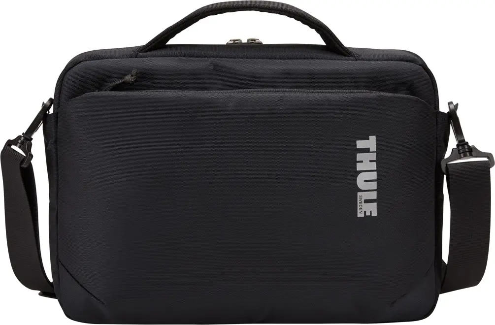 Thule Subterra MacBook Attache 13'’ BlackThe Thule Subterra MacBook Attache 13’’ houses your 13’’ MacBook Air/Pro/Retina and iPad all in one durable pouch. Easily access and organize tiny accessories with a front loading organization panel, pockets, and pen loops. Securely attaches to luggage with pass-through panel. Quickly access documents or magazines through back panel. Comes with a Removable padded shoulder strap. Durable and water resistant 800D Nylon. Available in Dark Shadow.085854245647