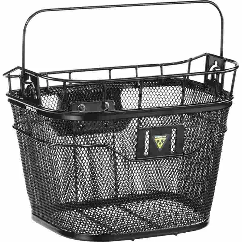 Topeak Alloy Front Basket with Fixer 3E for E-Bikes TB2011-BThe Topeak Front Basket with Fixer 3E for E-Bikes TB2011-B is a sturdy welded metal wire handlebar-mounted metal basket for shopping trips, quick jaunts around town. The New QuickClick handlebar mount is E-Bike compatible. Compatible with 22.2-31.8mm handlebars. Basket has dimensions of 13.8 x 10.2 x 9.8'' and a capacity of 975ci. Available in Black883466011137