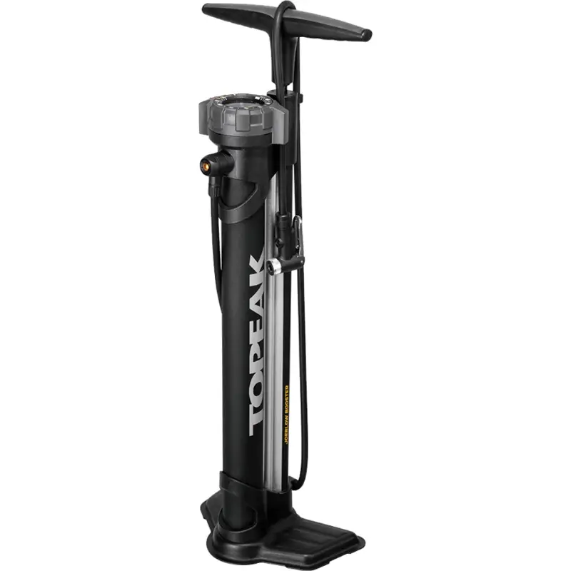 Topeak JoeBlow Booster w/SmartHead DX3 TJB-BST3The Topeak JoeBlow Booster makes it easier to install tubeless tires. This pump has an integrated aluminum air chamber that stores an air charge of one liter, up to 160psi / 11 bar. It quickly fills your tire and ensure the proper installation on a tubeless rim, just like a shop compressor. Once you flip the selector from “CHARGE” to “INFLATE” mode, air bypasses the chamber and flows directly into your tire like a standard pump. The top-mounted easy to read gauge, air release button and comfortable dual density polymer grip, combined with its extra-long hose and stable base makes mounting tubeless and standard tires a breeze. There is an air release button for precision filling and offers 303cc of air per stroke. The hose is 152cm or about 60 inches in length. Weighs 6.4lbs or 2.9kg.883466020054