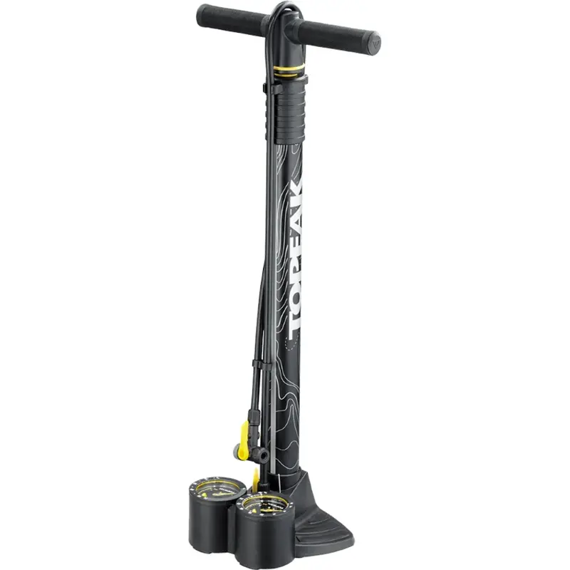 Topeak JoeBlow Dualie Floor Pump TJB-DULThe Topeak JoeBlow Dualie Floor Pump is a clever dual-gauge floor pump was exclusively designed for low pressure Fat-Bike tires and moderate pressure MTB tires. A massive oversized barrel is 1.5 times larger than a standard floor pump and delivers large air volume to fill oversized tires quickly. A 30 psi (2 bar) gauge shows precise low pressure for Fat-Bike tires while the 75 psi (5 bar) gauge shows higher pressures for MTB tires. An air release button on the TwinHead® allows for fine-tuning pressure. Includes Ball, bladder heads, and Hose dock. Weighs only 4.19lbs.883466011014