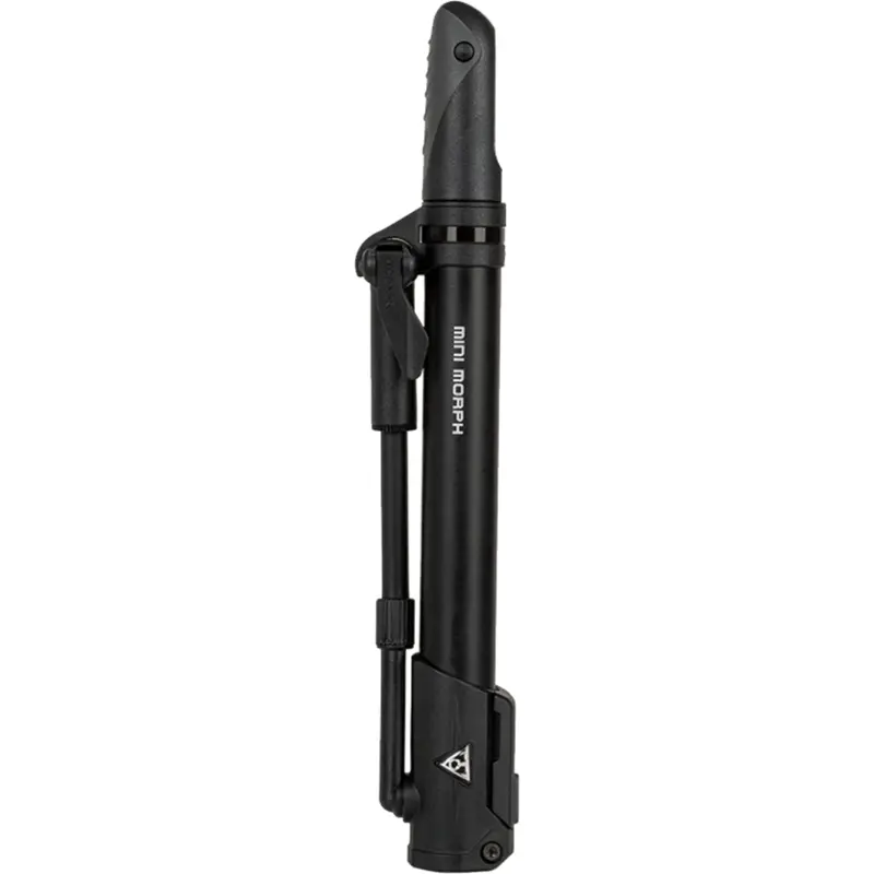 Topeak Mini Morph Frame Pump TMM-2BThe Topeak Mini Morph Frame Pump is the smallest Morph yet is still big on features. Fills both fat and skinny tires with ease, fold out foot pad and extended hose for hassle-free inflation. The durable construction uses a dual density polymer on the handle and butted aluminum on the barrel. This pump has a max capacity of 160 psi or 11 bar. The head is compatible with Presta, Schrader, and Dunlop valves. Weighs less than 160g.883466041523