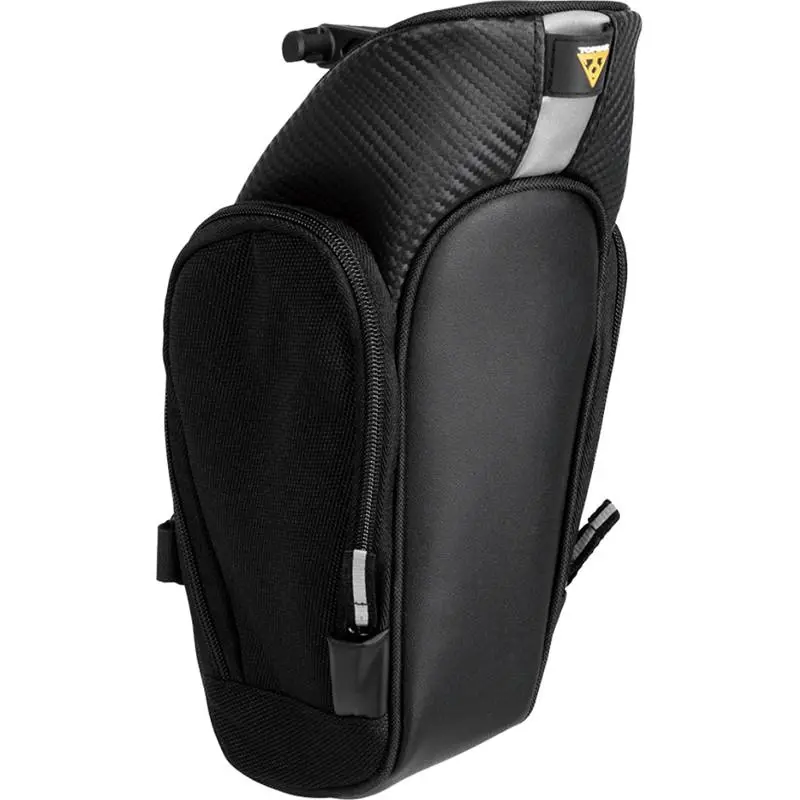 Topeak MondoPack XL W/Fixer 25 TC2286B2The Topeak MondoPack XL W/Fixer 25 delivers unmatched storage capacity and accessibility for long-distance cyclists, commuters, and touring riders. Designed for those who need to carry more than just the basics, this oversized 1.7-liter bag features two large side-opening panels that allow instant access to your gear from either side, eliminating the hassle of digging through tight spaces. Constructed from ultra-durable 1200 denier polyester with a rigid internal structure, it protects contents against bumps, vibration, and the elements. Inside, multiple mesh pockets keep small items like keys, tools, or CO2 cartridges neatly organized and secure during rides. The QuickClick (F25) mounting system ensures fast, tool-free attachment and removal from the saddle rails, complemented by a seatpost strap that fits diameters between 25.4 and 34.9 mm. There is a 3M reflective strip and rear safety light clip improve nighttime visibility, making the MondoPack XL a perfect companion for endurance rides and urban commutes alike. The dimensions are 12.6” x 6.3” x 5.1” or 32 x 16 x 13 cm. The weight is 9.93oz or 282g.883466020320