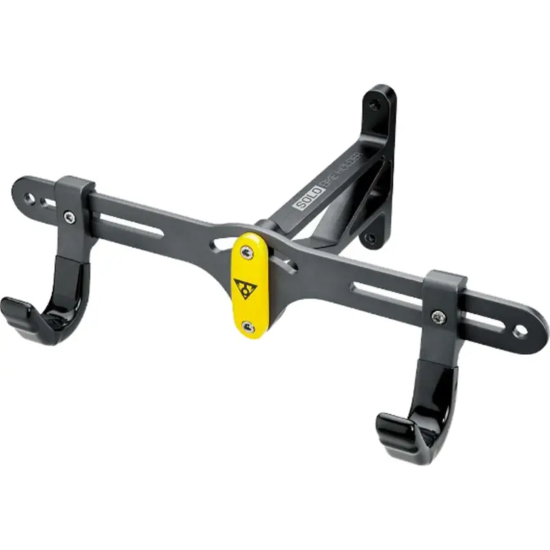 Topeak Solo Bike Holder TW017The Topeak Solo Bike Holder lets you display your bicycle within your home and customize the angle. Made of aluminum. Max weight capacity: 16kg or 35lbs. The hook angle and the hook position are both adjustable. Weighs only 2.33lbs or 1057g. The Dimensions are 42 x 28.6 x 14.4 cm / 16.5'' x 11.3'' x 5.7''.883466012462