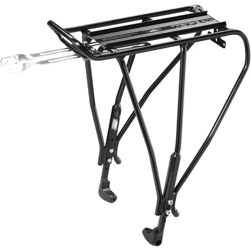 Topeak Uni Explorer MTX 2.0 Disc Mount Rack TA2147BTopeak Uni Explorer MTX 2.0 Disc Mount Rack is for 24”-29” & 700C Wheels with Disc Brakes. This one-size-fits-all aluminum tubular rear rack is equipped with adjustable legs to fit most 24” to 29” wheel MTB and 700C touring bikes with disc brakes. This tough tubular rack is perfect for touring, commuting, or running errands in town. The MTX QuickTrack® plate is compatible with any Topeak MTX TrunkBag, MTX rear basket, and most other rack packs and panniers on the market.883466033528