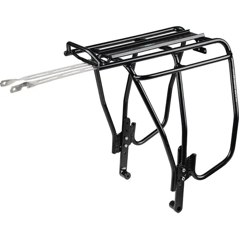 Topeak Uni SuperTourist FAT MTX 2.0 Disc Mount Rack TA2152BThe Topeak Uni SuperTouris FAT MTX 2.0 Disc Mount Rack is for 24” & 26” Wheel Fat Bikes. This one-size-fits-all aluminum tubular rear rack is designed exclusively for Fat Bikes with disc brakes. The rack legs are adjustable to fit most 24” & 26” wheel Fat Bikes. The integrated side bar provides a lower pannier attachment point allowing more space for cargo on top of the rack. The MTX QuickTrack® plate is compatible with any Topeak MTX TrunkBag, MTX rear basket, and most other rack packs and panniers on the market. Not compatible with asymmetric rear stay design fat bike frames. The dimensions are 43 x 34 x 29 cm. Weighs 1265g.883466033474