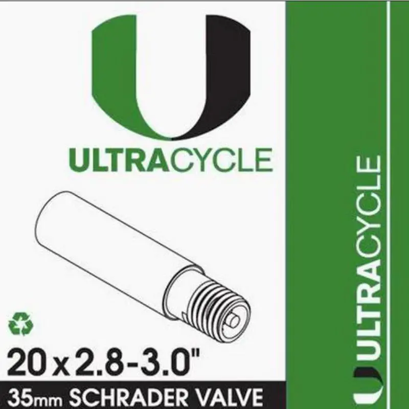 UltraCycle 20 x 2.8-3.0 Tube fits bicycle tires 20 x 2.8 - 3.0''. Made with butyl rubber. Has a 35mm Schrader valve and weighs 258g.