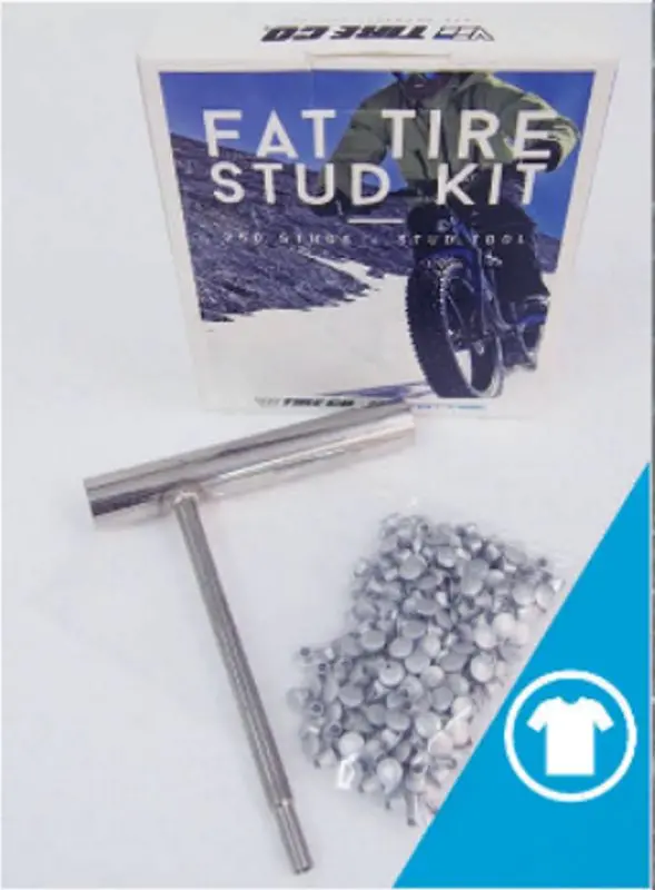 Vee Tire Fat Tire Stud Kit Vee Rubber Fat Tire Stud Kit is a great replacement kit to replace the studs on your Vee Rubber studded tire. Designed with tungsten carbide tips, the studs ensure traction on ice, snow, mud and frozen grounds. The kit comes with 250 studs and a stud tool to replace the studs. 848712080060