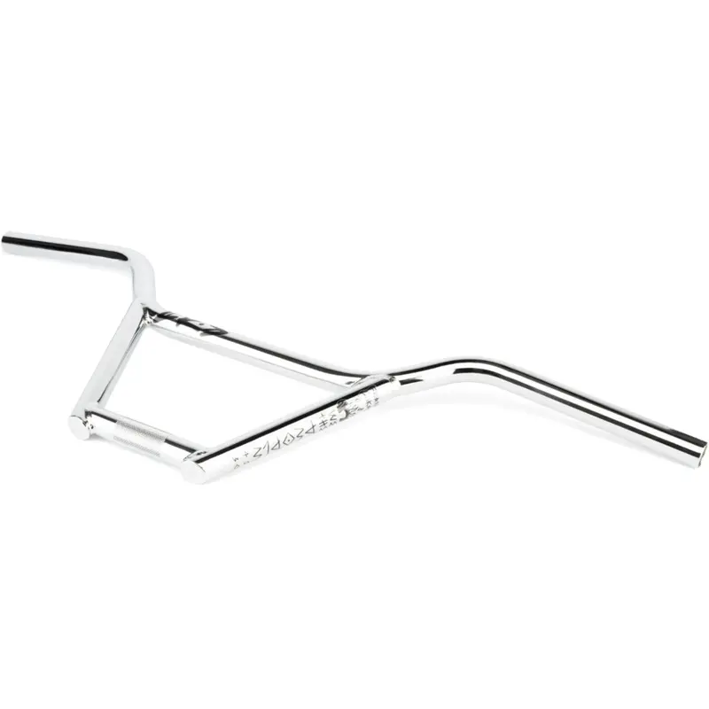 WeThePeople Flowcash BMX Handlebar 9.75’’ ChromeThe WeThePeople Flowcash BMX Handlebar is the third generation of the Wethepeople classic Flowcash bar. It has lightweight tubing, 4pc construction, and a choice of two rises. This is the 9.75’’ version in Chrome. This is the signature handlebar to Frank Lukas and is the perfect upgrade for the new school rider wanting a timeless look and feel. The width is 28.7’’, the upsweep is 9 degrees, the back sweep is 3 degrees, and weighs 1055g or 2.32lbs.4055822543071