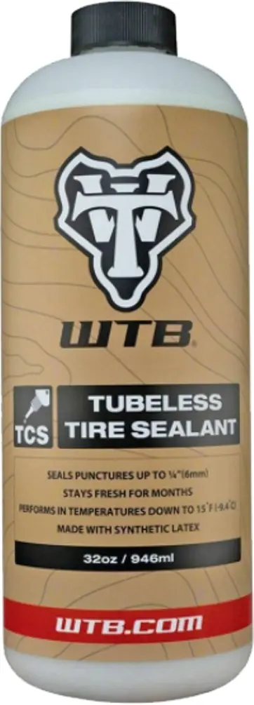 WTB TCS Tubeless Tire Sealant 32ozThe WTB TCS Tubeless Tire Sealant uses Synthetic latex formula is ammonia free and remains fresh for many months of riding varies based on climate. Unique formula cures within the puncture creating a flexible and long-lasting repair. Seals punctures up to 1/4". Optimized for temperatures down to 15 deg F. Available in 4oz, 8oz, 16oz, and 32oz.714401950986