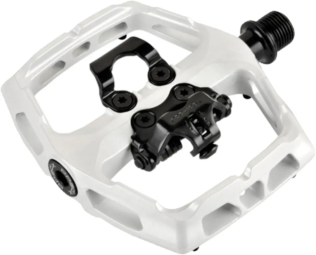 Xpedo Ambix Platform SPD Pedal WhiteXpedo Ambix Platform SPD Pedal has a dual-function design which allows you to decide if you want to ride flat or clipless. One side has 8 pins that allow for plenty of traction while the other side has an oversize front engagement claw that makes it easy to clip in. The Posi-Lock Micro-Adjustable Retention system allows you to fine tune your entry and release. The flat side with adjustable pin heights allows superior traction with any style of shoe. The Xpedo Ambix Platform SPD Pedal was designed with a wider Q-factor which allows for ample clearance between shoe and crankarm. Available in Black, White, Silver and Oil Slick.883511002653